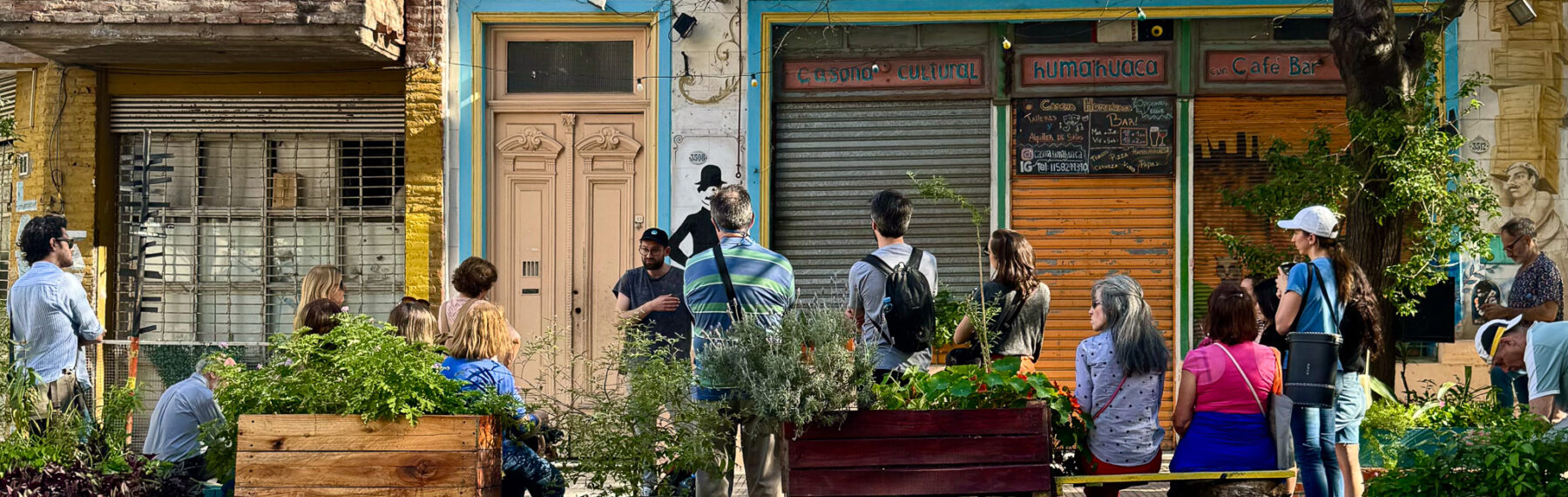 Esta caminata por “el Abasto” observa su entorno en diferentes épocas, y considera al Mercado mucho más allá de un espacio de transacciones comerciales. El cruce de sociabilidades populares, artísticas y políticas de su entorno delineó un paisaje muy particular, transitado por los malevos y estrellas de las primeras épocas del tango; por miles de chatas que cada madrugada llegaban de todas partes para cargar fruta y verdura frescas; por esa colectividad peruana que arriba en los 80, casi en simultáneo con una parte de la escena under cuyas caras mas famosas fueron Luca Prodan o Batato Barea; por los floggers y la tribu cinéfila que tomó por asalto al shopping.